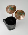 Charred wood base, copper wire, pre-decimal pennies with pigmented filler. Approx 9cm tall. Collaboration between QbA & Edward Crumpton, 2023.